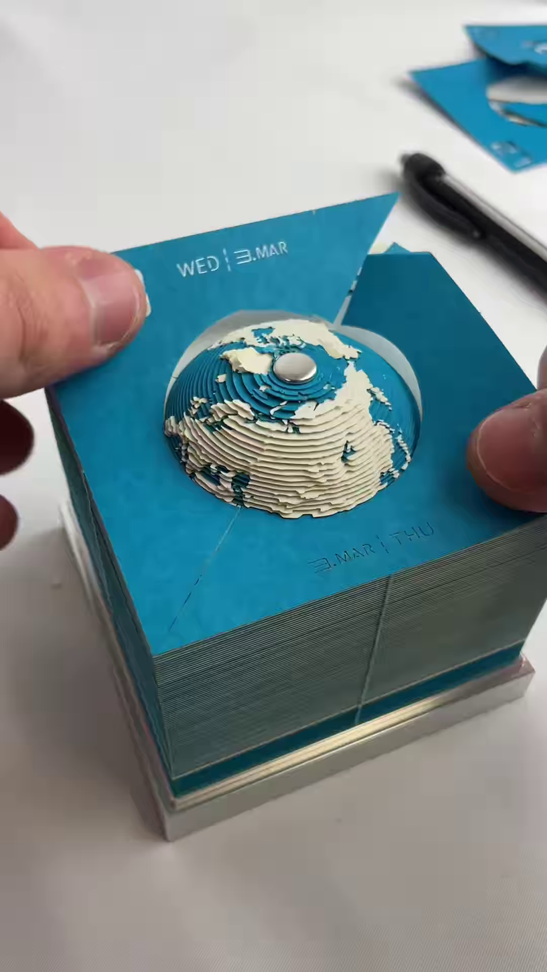 Watch the world take shapeβday by day. This mesmerizing 3D topographic calendar transforms every page into a layer of Earth π, culminating in a breathtaking paper sculpture by yearβs end. Each sheet is a date, and together they form a globeβa stunning fusion of design, patience, and precision. Perfect for lovers of geography, art, or simply the beauty of time unfolding. πΊοΈπβοΈ
